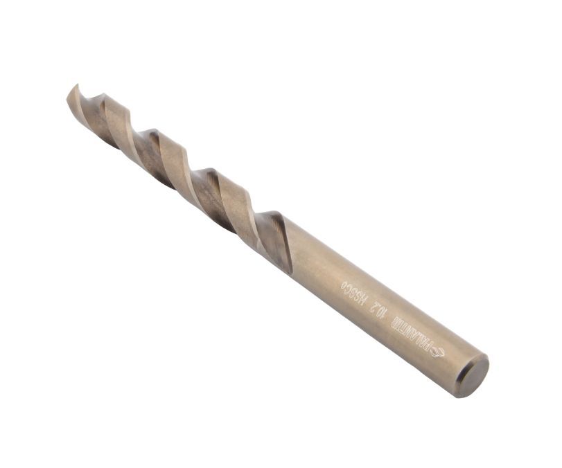 Спиральное сверло 10,2-HSCo-5 (DIN338) по металлу типа N диаметром 10,2 мм, угол при вершине режущей кромки 135°, общая длина сверла 133 мм. Сверло изготовлено из быстрорежущей стали M35 (содержание кобальта 5%) и используется для сверления отверстий в изделиях из нержавеющих и жаропрочных сталей. Бронзовое покрытие защищает инструмент от коррозионного воздействия и обеспечивает его износостойкостью.