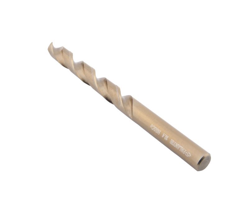 Спиральное сверло 10,4-HSCo-5 (DIN338) по металлу типа N диаметром 10,4 мм, угол при вершине режущей кромки 135°, общая длина сверла 133 мм. Сверло изготовлено из быстрорежущей стали M35 (содержание кобальта 5%) и используется для сверления отверстий в изделиях из нержавеющих и жаропрочных сталей. Бронзовое покрытие защищает инструмент от коррозионного воздействия и обеспечивает его износостойкостью.