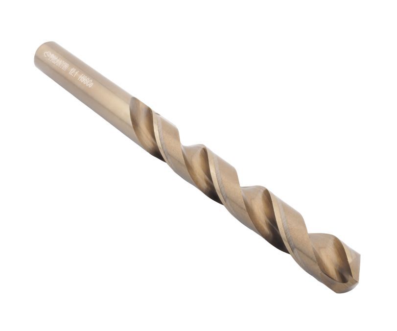 Спиральное сверло 12,1-HSCo-5 (DIN338) по металлу типа N диаметром 12,1 мм, угол при вершине режущей кромки 135°, общая длина сверла 151 мм. Сверло изготовлено из быстрорежущей стали M35 (содержание кобальта 5%) и используется для сверления отверстий в изделиях из нержавеющих и жаропрочных сталей. Бронзовое покрытие защищает инструмент от коррозионного воздействия и обеспечивает его износостойкостью.