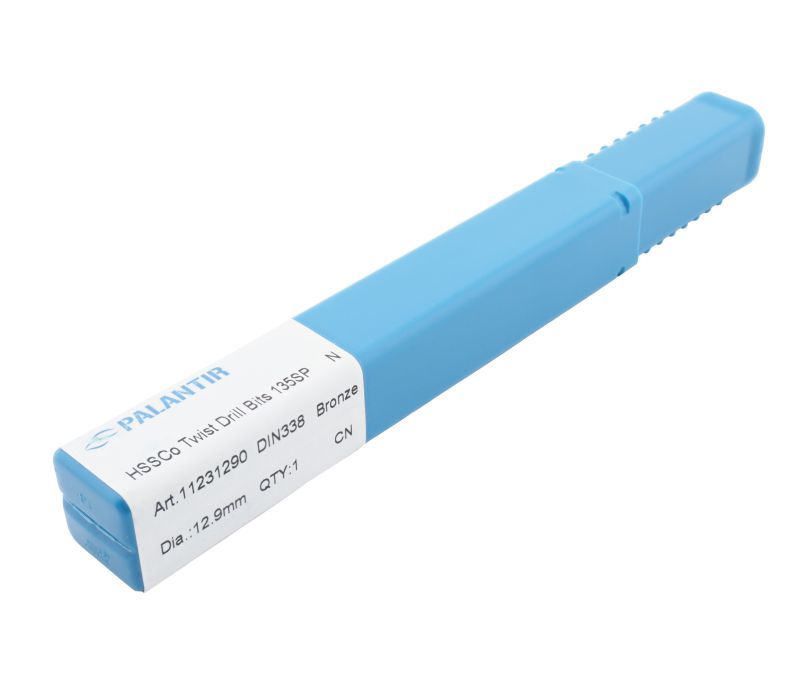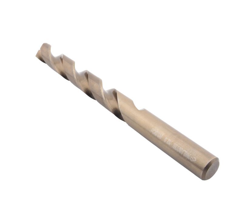 Спиральное сверло 12,9-HSCo-5 (DIN338) по металлу типа N диаметром 12,9 мм, угол при вершине режущей кромки 135°, общая длина сверла 151 мм. Сверло изготовлено из быстрорежущей стали M35 (содержание кобальта 5%) и используется для сверления отверстий в изделиях из нержавеющих и жаропрочных сталей. Бронзовое покрытие защищает инструмент от коррозионного воздействия и обеспечивает его износостойкостью.