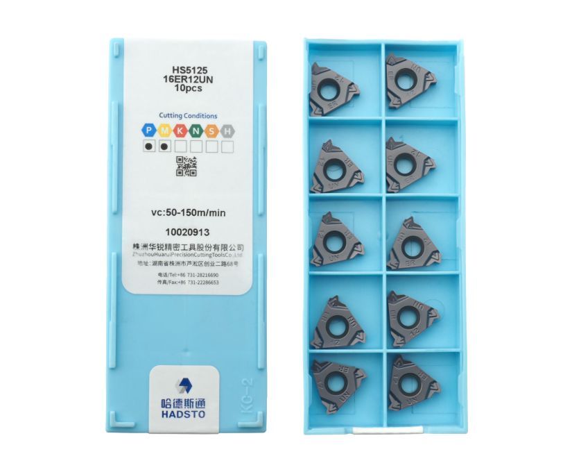 Твердосплавная сменная пластина 16ER-12UN-HS5125 используется для нарезания внутренней метрической резьбы 60° в заготовках из стали, нержавеющей стали, чугуна.