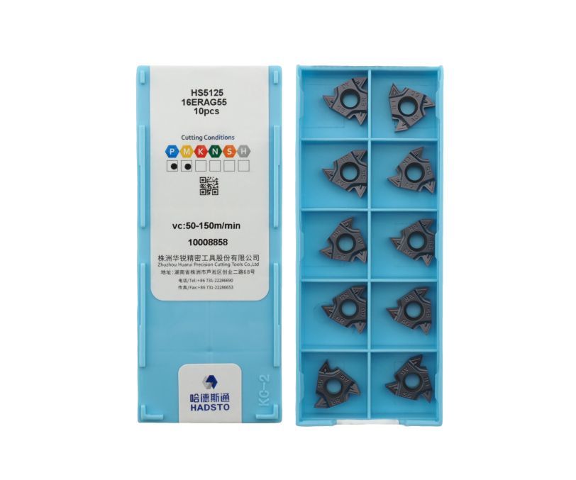 Твердосплавная сменная пластина 16ER-AG55-HS5125 используется для нарезания внутренней метрической резьбы 60° в заготовках из стали, нержавеющей стали, чугуна.