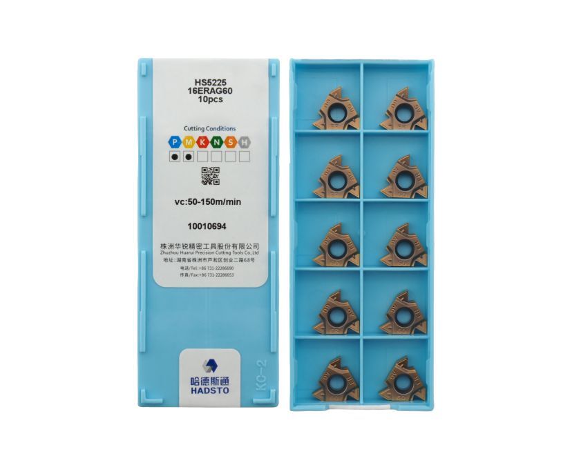Твердосплавная сменная пластина 16ER-AG60-HS5225 используется для нарезания внутренней метрической резьбы 60° в заготовках из стали, нержавеющей стали, чугуна.