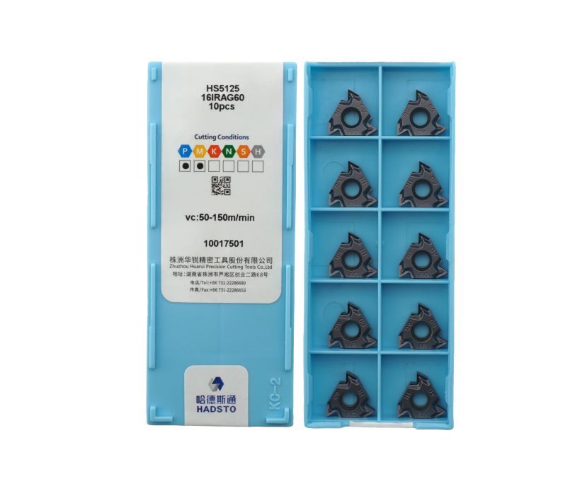 Твердосплавная сменная пластина 16IR-AG60-HS5125 используется для нарезания внутренней метрической резьбы 60° в заготовках из стали, нержавеющей стали, чугуна.