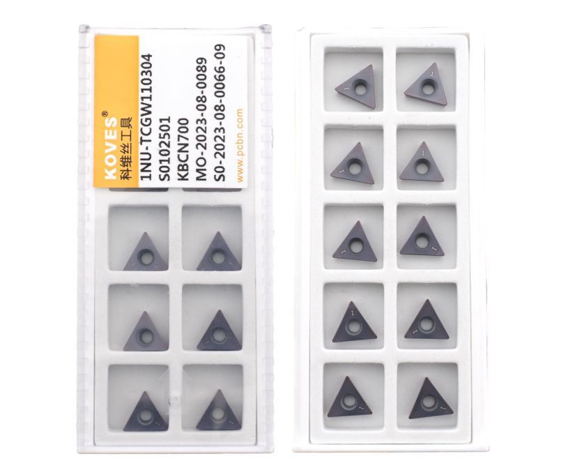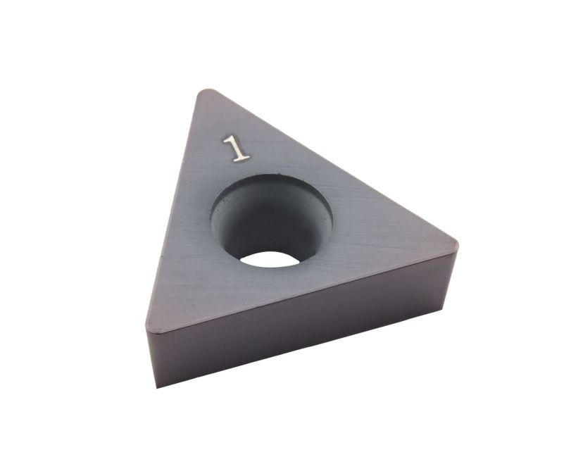 Сменная пластина 1NU-TCGW110304-KBCN700 используется для токарной получистовой обработки закаленной стали. Конструктивно представляет собой основу из твердого сплава, на одной стороне которой установлена одна напайка из сверхтвердого материала PCBN с защитным покрытием. Форма пластины - T (треугольник 60°). Позитивная геометрия, задний угол C (7°). Радиус при вершине 0,4 мм.