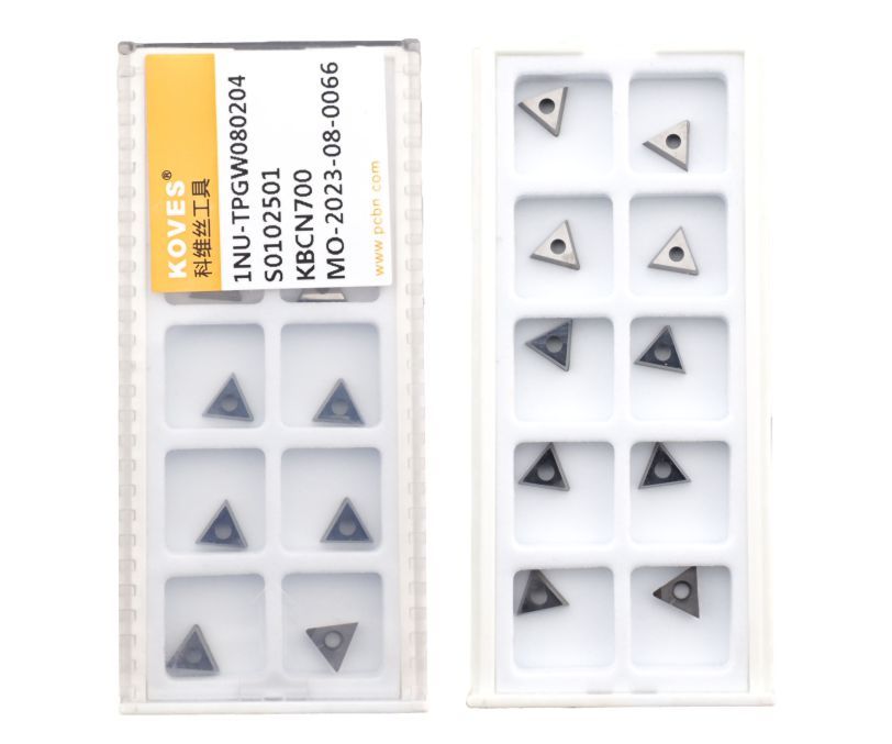 Сменная пластина 1NU-TPGW080204-KBCN700 используется для токарной получистовой обработки закаленной стали. Конструктивно представляет собой основу из твердого сплава, на одной стороне которой установлена одна напайка из сверхтвердого материала PCBN с защитным покрытием. Форма пластины - T (треугольник 60°). Позитивная геометрия, задний угол P (11°). Радиус при вершине 0,4 мм.
