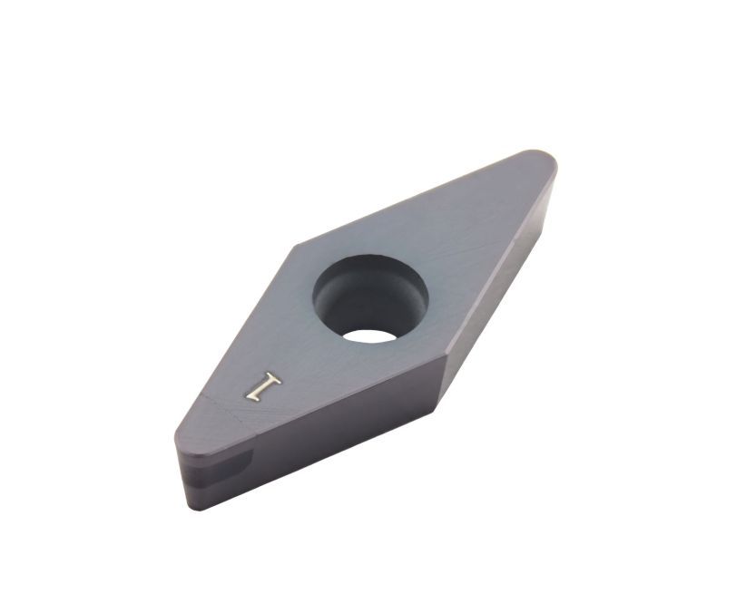Сменная пластина 1NU-VCGW110308-KBCN700 используется для токарной получистовой обработки закаленной стали. Конструктивно представляет собой основу из твердого сплава, на одной стороне которой установлена одна напайка из сверхтвердого материала PCBN с защитным покрытием. Форма пластины - V (ромб 35°). Позитивная геометрия, задний угол C (7°). Радиус при вершине 0,8 мм.