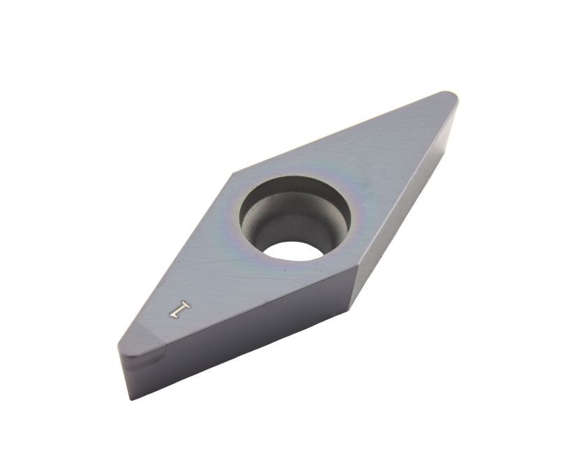 Сменная пластина 1NU-VCGW160408-KBCN700 используется для токарной получистовой обработки закаленной стали. Конструктивно представляет собой основу из твердого сплава, на одной стороне которой установлена одна напайка из сверхтвердого материала PCBN с защитным покрытием. Форма пластины - V (ромб 35°). Позитивная геометрия, задний угол C (7°). Радиус при вершине 0,8 мм.