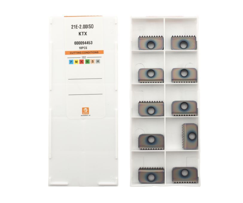 Лезвие твердосплавное 21E-2.00ISO-KTX используется для изготовления внутренней метрической резьбы 60° с шагом 2 мм. Обрабатываемый материал - сталь, нержавеющая сталь и чугун. Для увеличения износостойкости лезвия используется высокоэффективное защитное покрытие KTX.