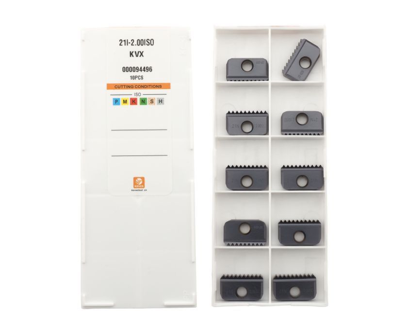 Лезвие твердосплавное 21I-2.00ISO-KVX используется для изготовления внутренней метрической резьбы 60° с шагом 2 мм. Обрабатываемый материал - сталь, нержавеющая сталь. Для увеличения износостойкости лезвия используется высокоэффективное защитное покрытие KVX.