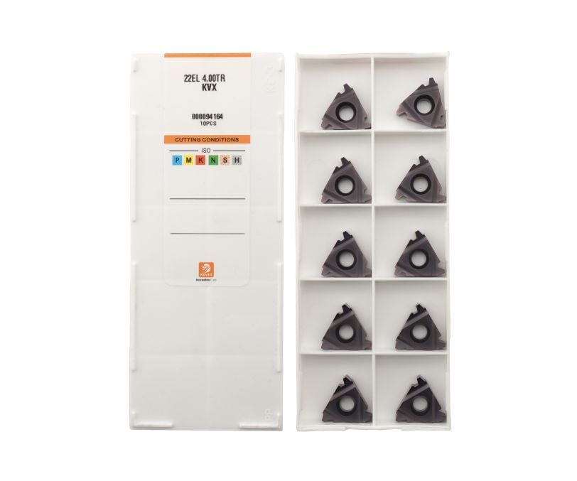 Сменная твердосплавная пластина 22EL-4.00TR-KVX для нарезания резьбы трапецеидального профиля, угол 30° по металлу. Тип резбы — EL/LW - наружная левая . Шаг резьбы — 4 мм. Обрабатываемый материал — P,M,K,S (Сталь, Нерж.сталь, Чугун, Жароп.сплавы).