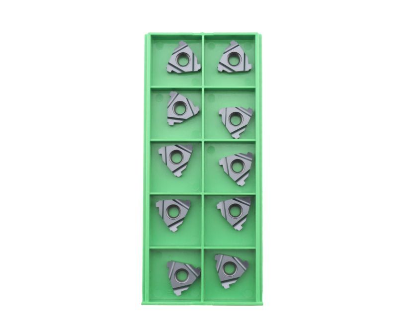 Сменная твердосплавная пластина 22NR-5BUT75-DM215 по металлу. Используется для нарезания наружной резьбы по типу Американская упорная резьба Buttress. Направление резьбы - IR/RN - внутренняя правая; шаг 5 tpi.