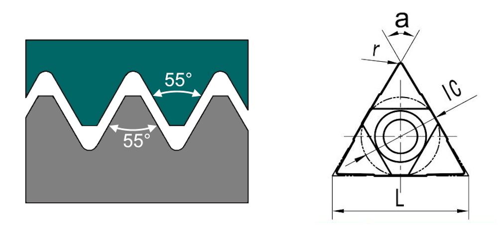 Сменная твердосплавная пластина 22UIDK55-DM215 для резьбофрез с тремя режущими кромками. Тип изготавливаемой резьбы - неполный профиль 55°.