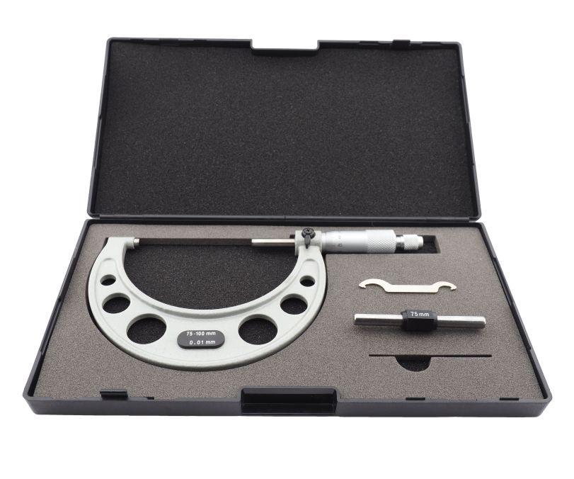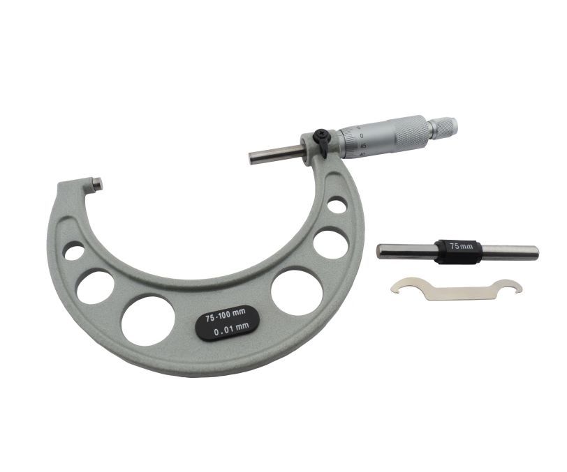 Микрометр гладкий 261-104D с диапазоном измерения 75-100 мм, шагом 0.01 мм при точности 0.005 мм, из закалённой стали. Встроенное устройствуо ограничения усилия обеспечивает точность; измерительная поверхность из цементированного карбида обеспечивает постоянную стабилизацию оборудования.