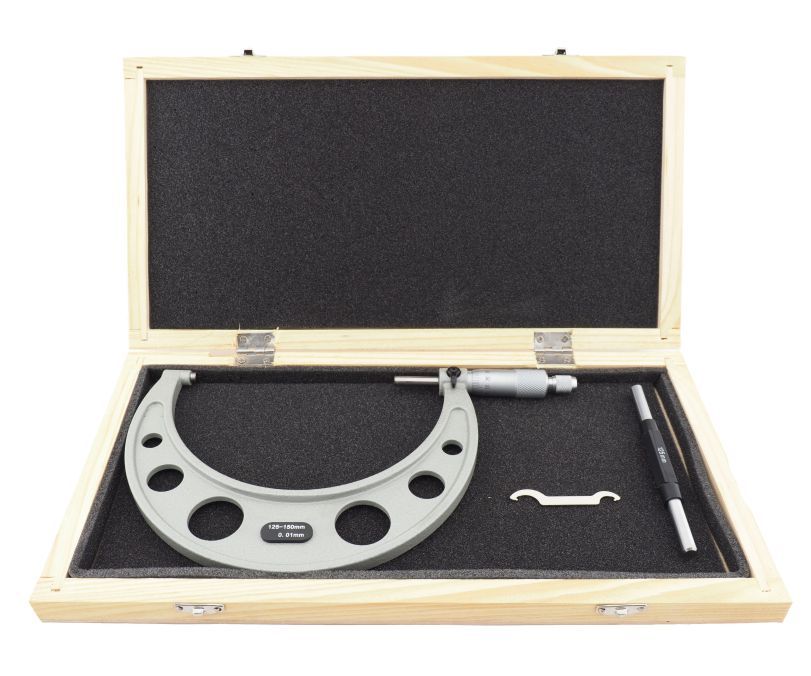 Микрометр гладкий 261-106D с диапазоном измерения 125-150 мм, шагом 0.01 мм при точности 0.006 мм, из закалённой стали. Встроенное устройствуо ограничения усилия обеспечивает точность; измерительная поверхность из цементированного карбида обеспечивает постоянную стабилизацию оборудования.