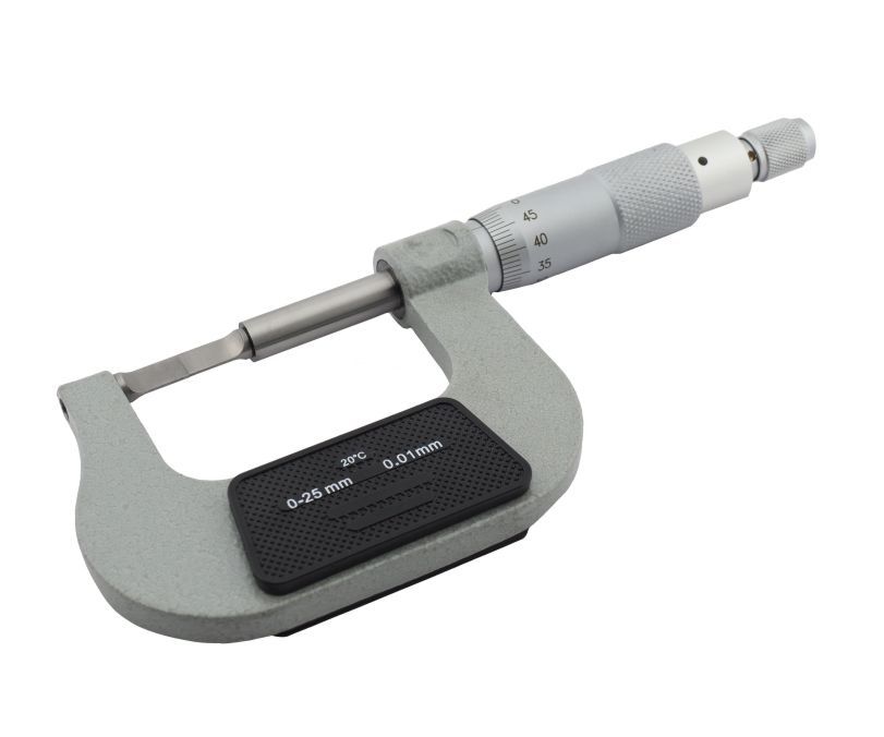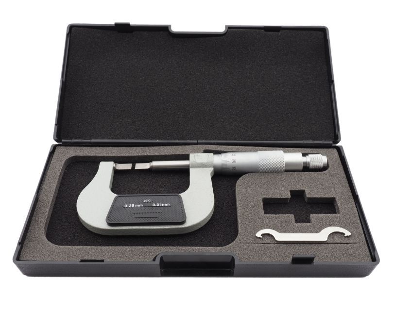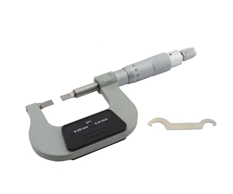 Микрометр лезвийный 262-301 для измерения диаметра канавок с диапазоном 0-25 мм, шагом 0,01 и точностью 0,004 мм.Так же имеет высокоточный прямой винт; с усилием храповой втулки; две дополнительные плоские измерительные поверхности.