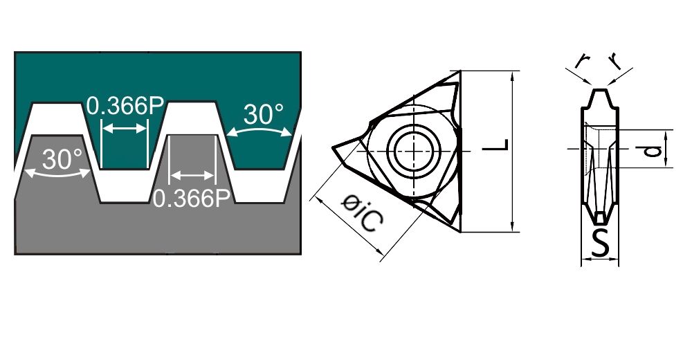 Сменная твердосплавная пластина 27VER-12TR-DM215 для нарезания резьбы трапецеидального профиля, угол 30° по металлу. Тип резбы — ER/RW - наружная правая. Шаг резьбы — 12 мм. Обрабатываемый материал — P,M,K (Сталь, Нержавеющая сталь, Чугун).
