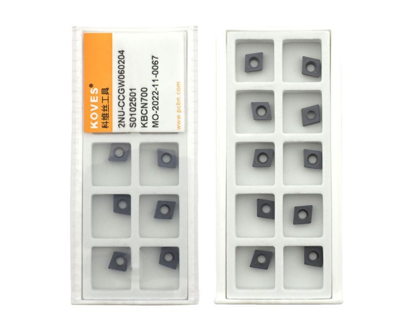 Сменная пластина 2NU-CCGW060204-KBCN700 используется для токарной получистовой обработки закаленной стали. Конструктивно представляет собой основу из твердого сплава, на одной стороне которой установлены две напайки из сверхтвердого материала PCBN с защитным покрытием. Форма пластины - C (ромб 80°). Позитивная геометрия, задний угол C (7°). Радиус при вершине 0,4 мм.
