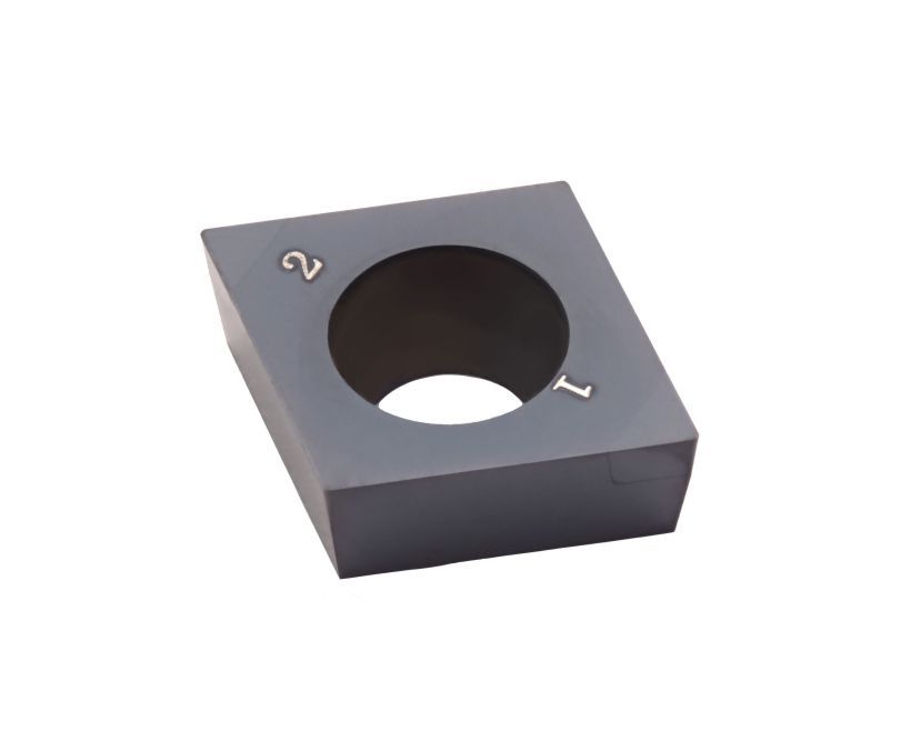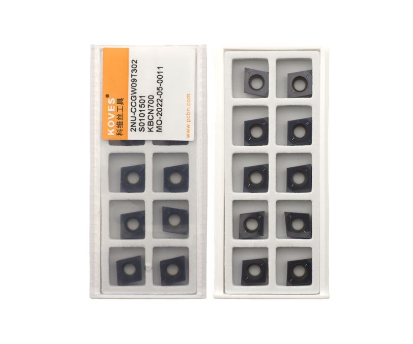 Сменная пластина 2NU-CCGW09T302-KBCN700 используется для токарной чистовой обработки закаленной стали. Конструктивно представляет собой основу из твердого сплава, на одной стороне которой установлены две напайки из сверхтвердого материала PCBN с защитным покрытием. Форма пластины - C (ромб 80°). Позитивная геометрия, задний угол C (7°). Радиус при вершине 0,2 мм.