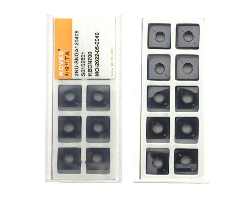 Сменная пластина 2NU-SNGA120408-KBCN700 используется для токарной получистовой обработки закаленной стали. Конструктивно представляет собой основу из твердого сплава, на одной стороне которой установлены две напайки из сверхтвердого материала PCBN с защитным покрытием. Форма пластины - S (квадрат). Негативная геометрия, задний угол N (0°). Радиус при вершине 0,8 мм.
