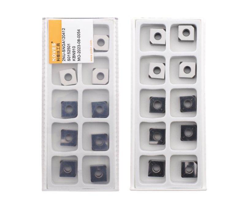 Сменная пластина 2NU-SNGA120412-KBN910 используется для токарной черновой обработки чугуна. Конструктивно представляет собой основу из твердого сплава, на одной стороне которой установлены две напайки из сверхтвердого материала PCBN без защитного покрытия. Форма пластины - S (квадрат). Негативная геометрия, задний угол N (0°). Радиус при вершине 1,2 мм.