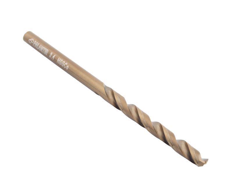 Спиральное сверло 3,4-HSCo-5 (DIN338) по металлу типа N диаметром 3,4 мм, угол при вершине режущей кромки 135°, общая длина сверла 70 мм. Сверло изготовлено из быстрорежущей стали M35 (содержание кобальта 5%) и используется для сверления отверстий в изделиях из нержавеющих и жаропрочных сталей. Бронзовое покрытие защищает инструмент от коррозионного воздействия и обеспечивает его износостойкостью.
