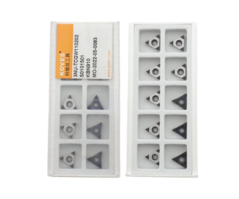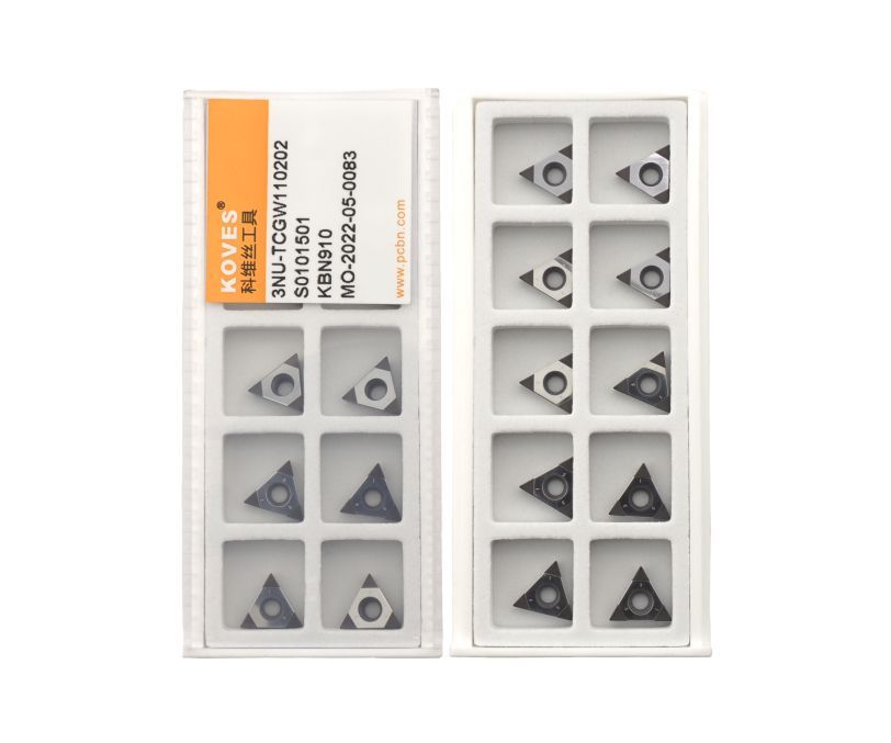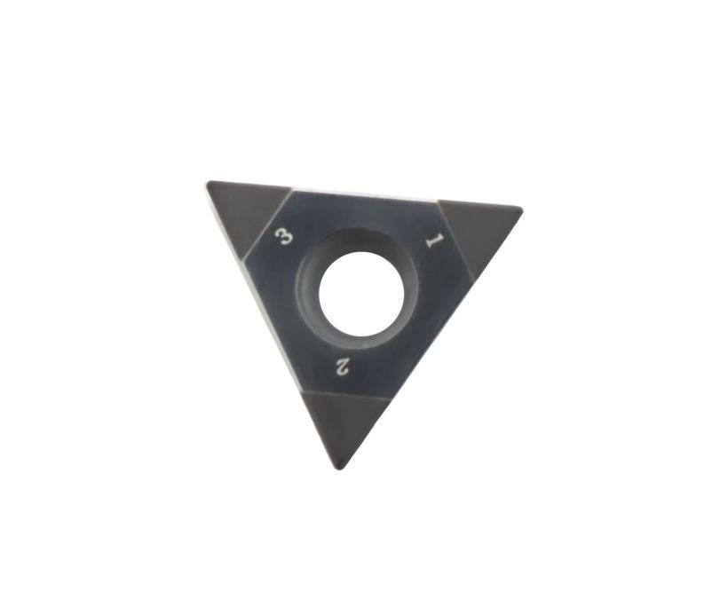 Сменная пластина 3NU-TCGW110202-KBN910 используется для токарной чистовой обработки чугуна. Конструктивно представляет собой основу из твердого сплава, на одной стороне которой установлены три напайки из сверхтвердого материала PCBN без защитного покрытия. Форма пластины - T (треугольник 60°). Позитивная геометрия, задний угол C (7°). Радиус при вершине 0,2 мм.