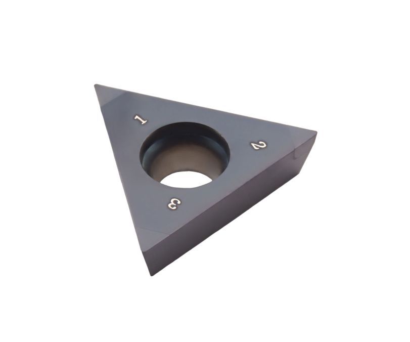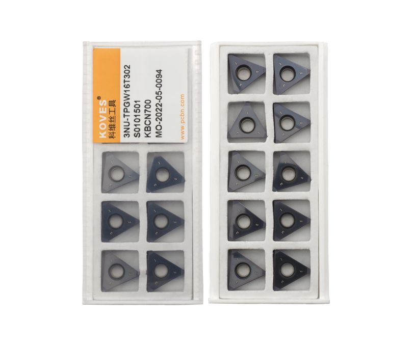 Сменная пластина 3NU-TPGW16T302-KBCN700 используется для токарной чистовой обработки закаленной стали. Конструктивно представляет собой основу из твердого сплава, на одной стороне которой установлены три напайки из сверхтвердого материала PCBN с защитным покрытием. Форма пластины - T (треугольник 60°). Позитивная геометрия, задний угол P (11°). Радиус при вершине 0,2 мм.
