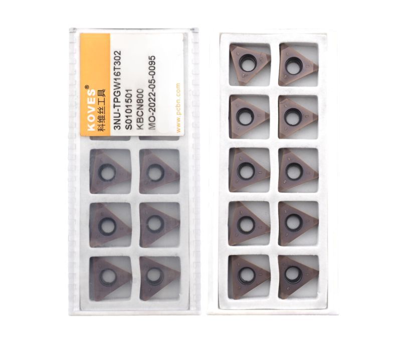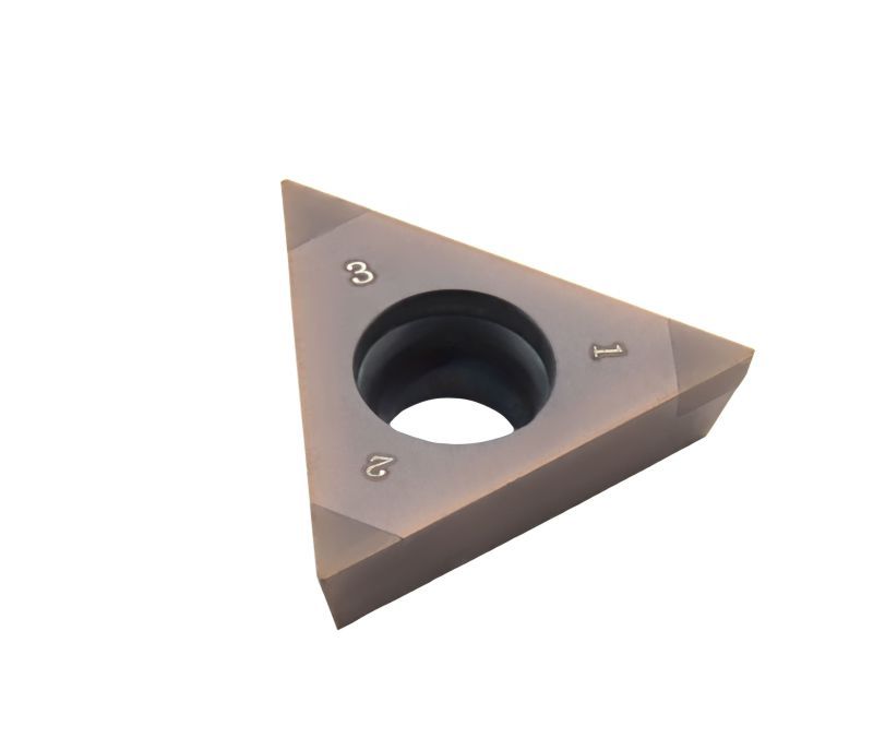Сменная пластина 3NU-TPGW16T302-KBCN800 используется для токарной чистовой обработки чугуна. Конструктивно представляет собой основу из твердого сплава, на одной стороне которой установлены три напайки из сверхтвердого материала PCBN с защитным покрытием. Форма пластины - T (треугольник 60°). Позитивная геометрия, задний угол P (11°). Радиус при вершине 0,2 мм.