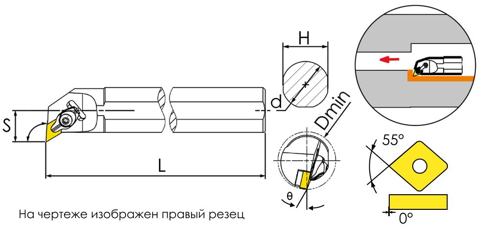 Токарный резец (державка) расточной A40T-DDUNR15 фирмы SANT является идеальным инструментом для внутреннего продольного точения и подрезки торца металлических изделий при помощи сменные твердосплавные пластины типа DN.. 1506... Крепление пластины к державке A40T-DDUNR15 осуществляется двойным прижимом кронштейном. Державка A40T-DDUNR15 типа А выполнена из стали с каналом для подачи СОЖ. Сечение резца составляет 40 мм, минимальный диаметр растачивания 50 мм. Длина державки A40T-DDUNR15 равна 300 мм, исполнение: правое.