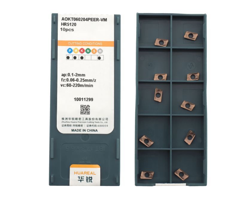 Фрезерная пластина AOKT060204PEER-VM-HR5120 бренда Huareal применяется для обработки заготовок из стали, нержавеющей стали и чугуна.