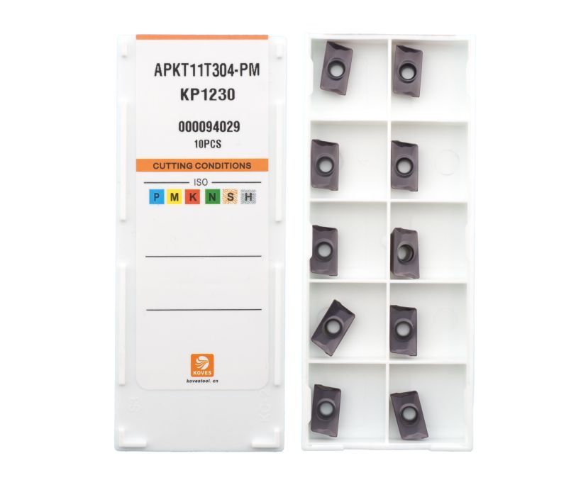 Фрезерная пластина APKT11T304-PM-KP1230 бренда Koves применяется для обработки заготовок из стали, нержавеющей стали и чугуна.