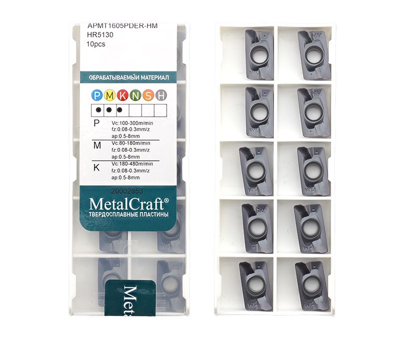 Фрезерная пластина APMT1605PDER-HM-HR5130 бренда MetalCraft применяется для обработки заготовок из стали, нержавеющей стали и чугуна.