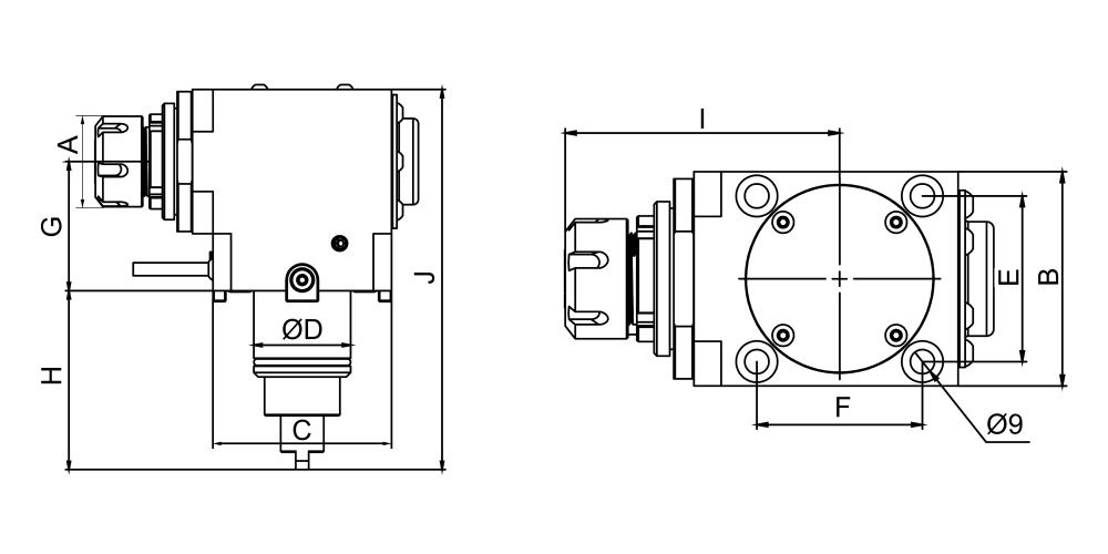 BMT45-90-60-ER25 Радиальный приводной блок для цанг ER25