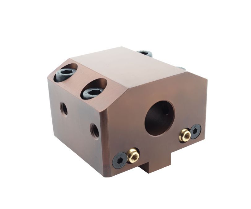 Инструментальный блок BOT-70X40-20-D25 для болтового крепления "Bolt-on tool holder". Фиксация в револьверной головке станка осуществляется при помощи 4 болтов. Благодаря этому он обеспечивает надежное и точное крепление инструмента, что позволяет достичь высокого качества обработки деталей.