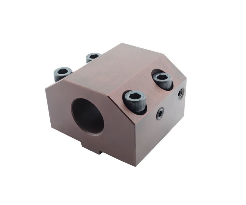 Инструментальный блок BOT-70X40-20-D32 для болтового крепления "Bolt-on tool holder". Фиксация в револьверной головке станка осуществляется при помощи 4 болтов. Благодаря этому он обеспечивает надежное и точное крепление инструмента, что позволяет достичь высокого качества обработки деталей.