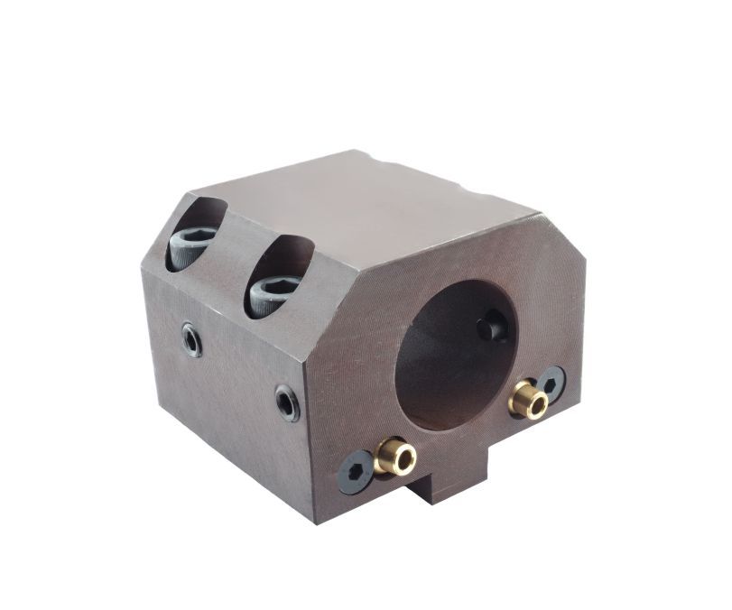 Инструментальный блок BOT-70X40-20-D40 для болтового крепления "Bolt-on tool holder". Фиксация в револьверной головке станка осуществляется при помощи 4 болтов. Благодаря этому он обеспечивает надежное и точное крепление инструмента, что позволяет достичь высокого качества обработки деталей.