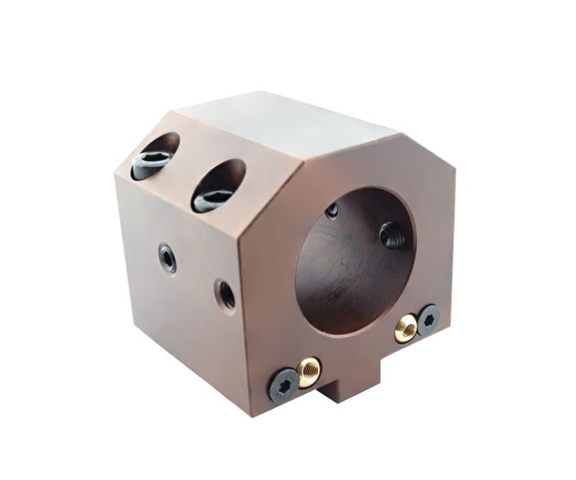 Инструментальный блок BOT-70X40-20-D50 для болтового крепления "Bolt-on tool holder". Фиксация в револьверной головке станка осуществляется при помощи 4 болтов. Благодаря этому он обеспечивает надежное и точное крепление инструмента, что позволяет достичь высокого качества обработки деталей.
