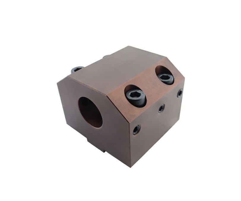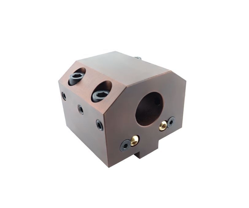 Инструментальный блок BOT-71X43-25-D32/40 для болтового крепления "Bolt-on tool holder". Фиксация в револьверной головке станка осуществляется при помощи 4 болтов. Благодаря этому он обеспечивает надежное и точное крепление инструмента, что позволяет достичь высокого качества обработки деталей.