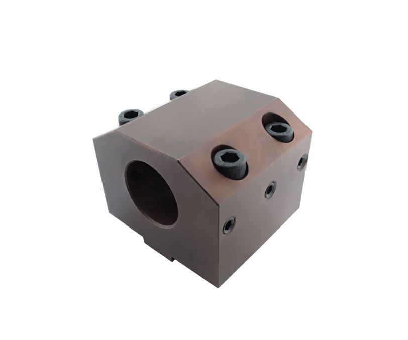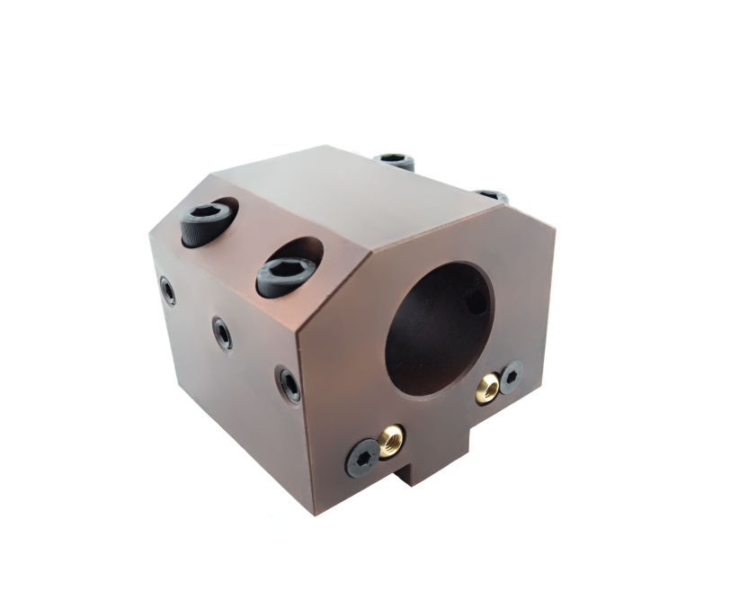 Инструментальный блок BOT-71X43-25-D40/40 для болтового крепления "Bolt-on tool holder". Фиксация в револьверной головке станка осуществляется при помощи 4 болтов. Благодаря этому он обеспечивает надежное и точное крепление инструмента, что позволяет достичь высокого качества обработки деталей.