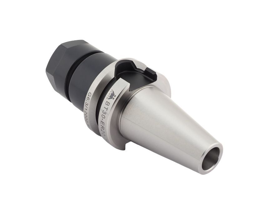 Фрезерный патрон BT30-ER20-070 (MAS 403, JIS B 6339) обеспечивает надежную фиксацию режущего инструмента с цилиндрическим хвостовиком в шпинделе станка и используется в сверлильных, фрезерных станках с ЧПУ, обрабатывающих центрах. Фиксация инструмента в корпусе патрона осуществляется при помощи зажимной цанги ER20 (DIN 6499) и гайки типа А. В зависимости от размера отверстия цанги в патрон устанавливается инструмент с хвостовиком диаметром от 1 до 13 мм. Крепление оправки в шпинделе производится при помощи штревельного болта M12, который не входит в комплект поставки и приобретается дополнительно. Тип подачи СОЖ: АD (через центральное отверстие). Вылет патрона от шпинделя станка составляет 70 мм.