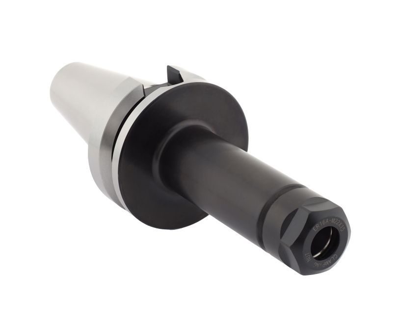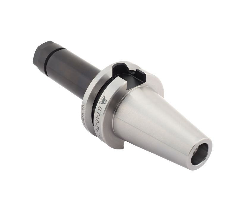 Фрезерный патрон BT40-ER16-120 (MAS 403, JIS B 6339) обеспечивает надежную фиксацию режущего инструмента с цилиндрическим хвостовиком в шпинделе станка и используется в сверлильных, фрезерных станках с ЧПУ, обрабатывающих центрах. Фиксация инструмента в корпусе патрона осуществляется при помощи зажимной цанги ER16 (DIN 6499) и гайки типа A. В зависимости от размера отверстия цанги в патрон устанавливается инструмент с хвостовиком диаметром от 1 до 10 мм. Крепление оправки в шпинделе производится при помощи штревельного болта M16, который не входит в комплект поставки и приобретается дополнительно. Тип подачи СОЖ: АD (через центральное отверстие). Вылет патрона от шпинделя станка составляет 120 мм. Балансировка патрона: G6.3/12000 об/мин.