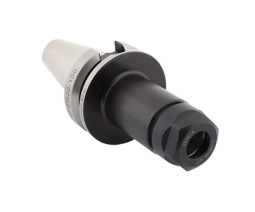 Фрезерный патрон BT40-ER20-100 (MAS 403, JIS B 6339) обеспечивает надежную фиксацию режущего инструмента с цилиндрическим хвостовиком в шпинделе станка и используется в сверлильных, фрезерных станках с ЧПУ, обрабатывающих центрах. Фиксация инструмента в корпусе патрона осуществляется при помощи зажимной цанги ER20 (DIN 6499) и гайки типа A. В зависимости от размера отверстия цанги в патрон устанавливается инструмент с хвостовиком диаметром от 1 до 13 мм. Крепление оправки в шпинделе производится при помощи штревельного болта M16, который не входит в комплект поставки и приобретается дополнительно. Тип подачи СОЖ: АD (через центральное отверстие). Вылет патрона от шпинделя станка составляет 100 мм. Балансировка патрона: G6.3/12000 об/мин.