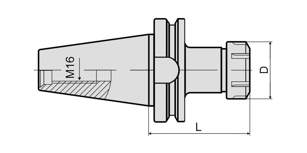 Фрезерный патрон BT40-ER32-200 (MAS 403, JIS B 6339) обеспечивает надежную фиксацию режущего инструмента с цлинидрическим хвостовиком в шпинделе станка и используется в сверлильных, фрезерных станках с ЧПУ, обрабатывающих центрах. Фиксация инструмента в корпусе патрона осуществляется при помощи зажимной цанги ER32 (DIN 6499) и гайки типа UM. В зависимости от размера отверстстия цанги в патрон устанавливается инструмент с хвостовиком диаметром от 2 до 20 мм. Крепление оправки в шпинделе производится при помощи штревельного болта M16, который не входит в комплект поставки и приобретается дополнительно. Тип подачи СОЖ: АD (через центральное отверстие). Вылет патрона от шпинделя станка составляет 200 мм. Балансировка патрона: G6.3/12000 об/мин.