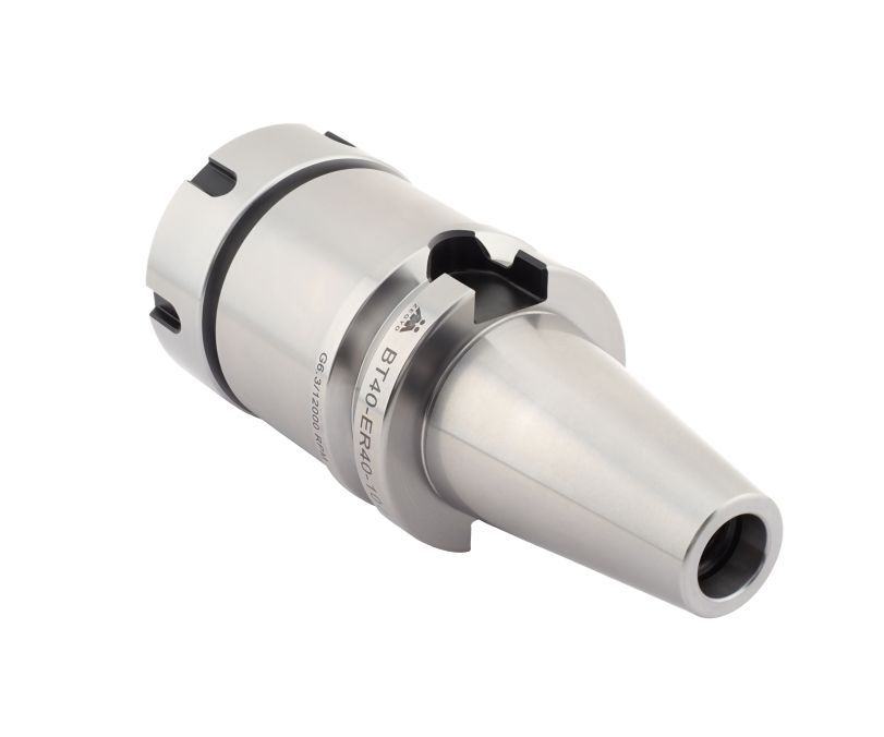 Фрезерный патрон BT40-ER40-100 (MAS 403, JIS B 6339) обеспечивает надежную фиксацию режущего инструмента с цилиндрическим хвостовиком в шпинделе станка и используется в сверлильных, фрезерных станках с ЧПУ, обрабатывающих центрах. Фиксация инструмента в корпусе патрона осуществляется при помощи зажимной цанги ER40 (DIN 6499) и гайки типа UM. В зависимости от размера отверстия цанги в патрон устанавливается инструмент с хвостовиком диаметром от 3 до 26 мм. Крепление оправки в шпинделе производится при помощи штревельного болта M16, который не входит в комплект поставки и приобретается дополнительно. Тип подачи СОЖ: АD (через центральное отверстие). Вылет патрона от шпинделя станка составляет 100 мм. Балансировка патрона: G6.3/12000 об/мин.