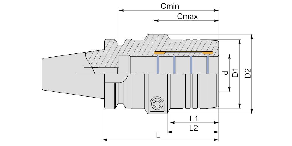 Фрезерный гидропластовый патрон BT40-HDC16-090 обеспечивает надежную фиксацию режущего инструмента с цилиндрическим хвостовиком в шпинделе станка. Фиксация инструмента в патроне осуществляется за счет увеличения давления жидкости в специальной полости при помощи регулировочного винта. Номинальный диаметр хвостовика зажимаемого инструмента 16 мм с допуском h6.