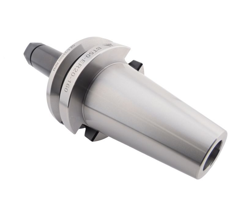 Фрезерный патрон BT50-ER20-160 (MAS 403, JIS B 6339) обеспечивает надежную фиксацию режущего инструмента с цилиндрическим хвостовиком в шпинделе станка и используется в сверлильных, фрезерных станках с ЧПУ, обрабатывающих центрах. Фиксация инструмента в корпусе патрона осуществляется при помощи зажимной цанги ER20 (DIN 6499) и гайки типа A. В зависимости от размера отверстия цанги в патрон устанавливается инструмент с хвостовиком диаметром от 1 до 13 мм. Крепление оправки в шпинделе производится при помощи штревельного болта M24, который не входит в комплект поставки и приобретается дополнительно. Тип подачи СОЖ: АD (через центральное отверстие). Вылет патрона от шпинделя станка составляет 160 мм.