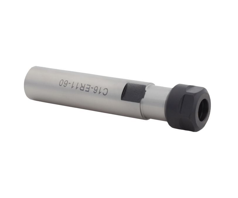 Фрезерный патрон C16-ER11-060 (DIN 6535 HA / ISO 3338) используется в условиях большого вылета инструмента или ограниченного доступа к зоне резания. Цилиндрический хвостовик оправки фиксируется в цанговом зажиме большего размера или патроне Weldon (при наличии специальной лыски на хвостовике). Установка режущего инструмента в корпус патрона осуществляется при помощи зажимной цанги ER11 (DIN 6499) и гайки типа A. В зависимости от размера отверстия цанги в патрон устанавливается инструмент с цилиндрическим хвостовиком диаметром от 1 до 7 мм. Длина хвостовика патрона составляет 60 мм.