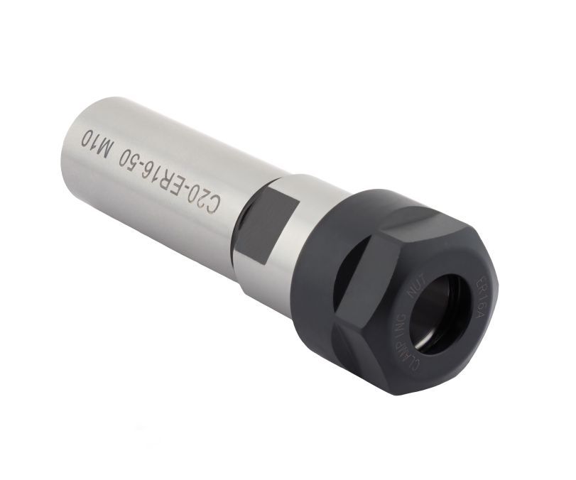 Фрезерный патрон C20-ER16-050 (DIN 6535 HA / ISO 3338) используется в условиях большого вылета инструмента или ограниченного доступа к зоне резания. Цилиндрический хвостовик оправки фиксируется в цанговом зажиме большего размера или патроне Weldon (при наличии специальной лыски на хвостовике). Установка режущего инструмента в корпус патрона осуществляется при помощи зажимной цанги ER16 (DIN 6499) и гайки типа A. В зависимости от размера отверстия цанги в патрон устанавливается инструмент с цилиндрическим хвостовиком диаметром от 1 до 10 мм. Длина хвостовика патрона составляет 50 мм.
