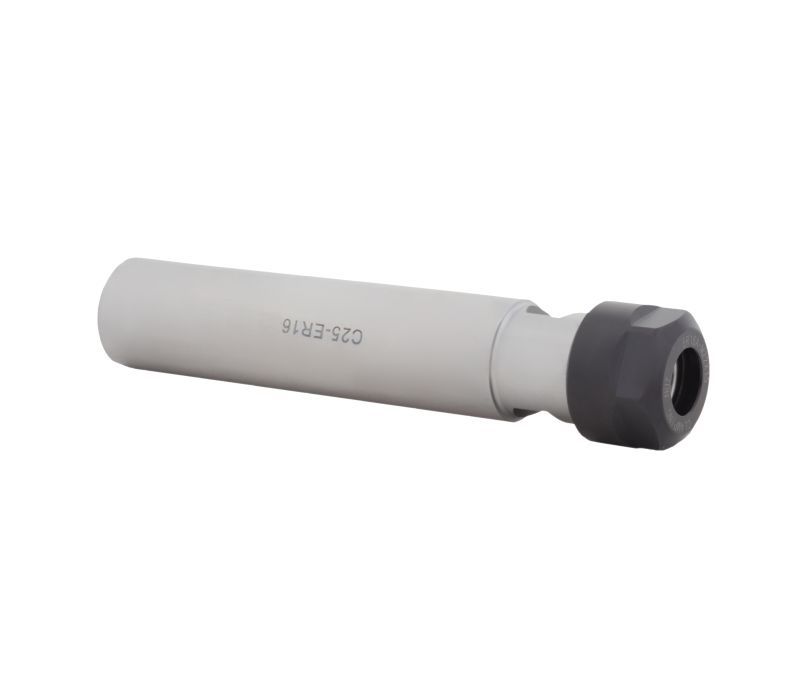 Фрезерный патрон C25-ER16-250–OM (DIN 6535 HA / ISO 3338) используется в условиях большого вылета инструмента или ограниченного доступа к зоне резания. Цилиндрический хвостовик оправки фиксируется в цанговом зажиме большего размера или патроне Weldon (при наличии специальной лыски на хвостовике). Установка режущего инструмента в корпус патрона осуществляется при помощи зажимной цанги ER16 (DIN 6499) и гайки типа A. В зависимости от размера отверстия цанги в патрон устанавливается инструмент с цилиндрическим хвостовиком диаметром от 1 до 10 мм. Длина хвостовика патрона составляет 250 мм.